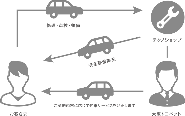 点検・修理・車検整備など、手の抜けないメンテナンスの手配も大阪トヨペットが代行します。