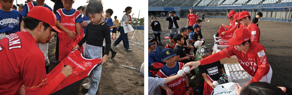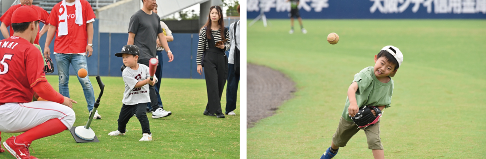 親子でのキャッチボールや選手とのふれあい会などを通じて、野球経験ありのお子様から未経験のお子様まで皆様に楽しんでいただくことができました。