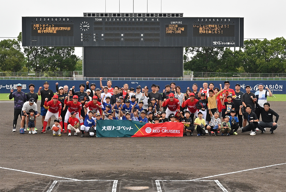 数々のプロ野球選手を輩出しているトヨタ自動車硬式野球部 RED CRUISERSの選手達といっしょに楽しめる親子野球教室を開催いたしました。